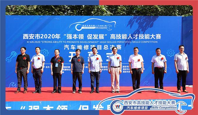 8月9日上午9:30,由西安市委组织部、市人社局、市总工会联合主办,西安市职业技能协会、西安万通汽车学校偕同承办的西安市2020年“练本领 促发展”高技能人才技能大赛汽车维修项目决赛开幕式在西安万通汽车学校隆重举行。西安市人社局技能鉴定中心主任罗曼、西安市职业技能协会会长邢昱明、西安市职业技能协会秘书长赵秦伟出席开幕式,现场大赛裁判、参赛选手、新闻媒体等共200余人参加。