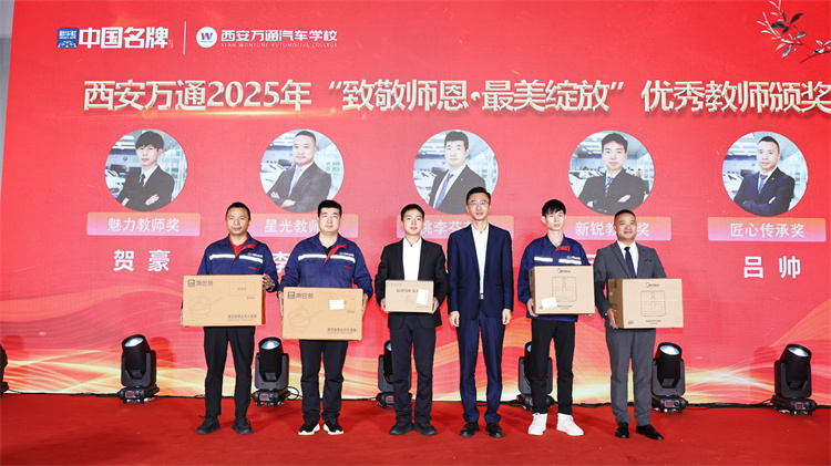 在庄重的表彰环节,总务处主管李林先生、教务处主管李旭东先生以及行政人事督察处主任魏刚先生先后上台,为在“西安万通2025年教学质量季”第三季度中表现突出的优秀学生们颁发了荣誉证书,并表彰了贺豪、李小安、万云飞、马文瑞、吕帅等荣获“魅力教师”、“星光教师”、“新锐教师”、“桃李芬芳奖”和“匠心传承奖”的优秀教职工。