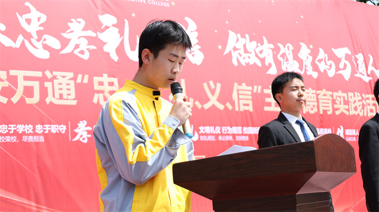 致辞寄厚望:美德是立身之本 教务处李旭东主管首先为活动致辞。他指出,“忠孝礼义信”是中华优秀传统文化的核心价值,更是同学们为人处世、职业发展的根本准则。他勉励全体学生要将美德内化于心、外化于行,努力成长为德技双修的新时代技能人才。