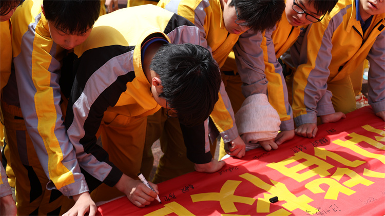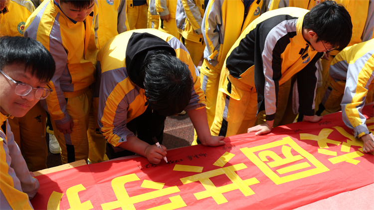 签字铭初心:一笔一画践承诺 随后,各班级班委代表依次上台,在“传承忠孝礼义信,争做文明中职生”主题横幅上郑重签名。每一个名字,都是一份责任;每一笔签名,都是一份担当。大家纷纷表示,将以此次签约为起点,带领全班同学积极参与活动,共建文明班级、文明校园。